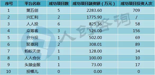 注1:本表统计的是各平台2018年5月股权型成功项目的相关数据,不包括众筹中项目和已失败项目。