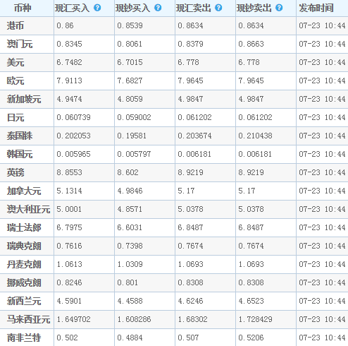 【推荐】2018年7月23日中国建设银行外汇汇率参考建行外汇手续费是多少