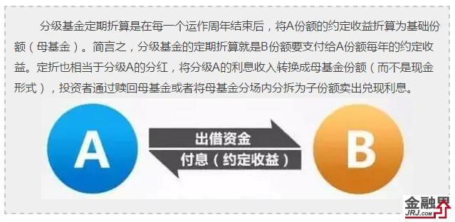 分级基金定期折算是在每一个运作周年结束后,将A份额的约定收益折算为基础份额(母基金)。简言之,分级基金的定期折算就是B份额要支付给A份额每年的约定收益。定折也相当于分级A的分红,将分级A的利息收入转换成母基金份额(而不是现金形式),投资者通过赎回母基金或者将母基金分场内分拆为子份额卖出兑现利息。