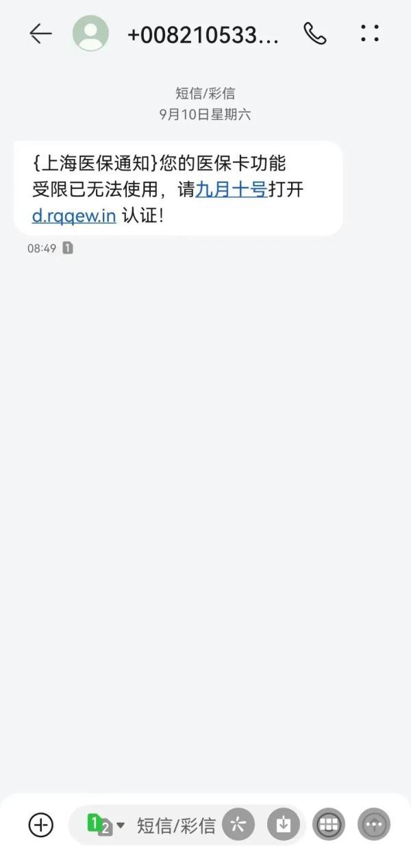 调查还发现,一些以“医保”为幌子的诈骗短信也会利用“社保局”“医保局”“社会保险公共服务平台”等名义发送短信,点开链接后跳转的页面内含木马病毒链接。如果按页面上的提示填写身份证号、银行卡号等信息,可能导致银行卡、医保账户被盗刷。