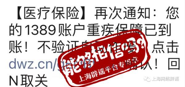 上海辟谣平台发现,近期全国多地先后出现了这条短信,但医保部门近期并无与“重疾保障”有关的新保险。