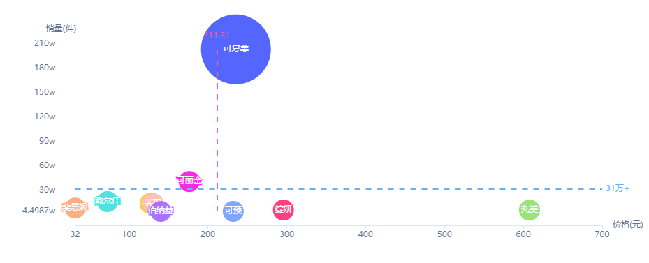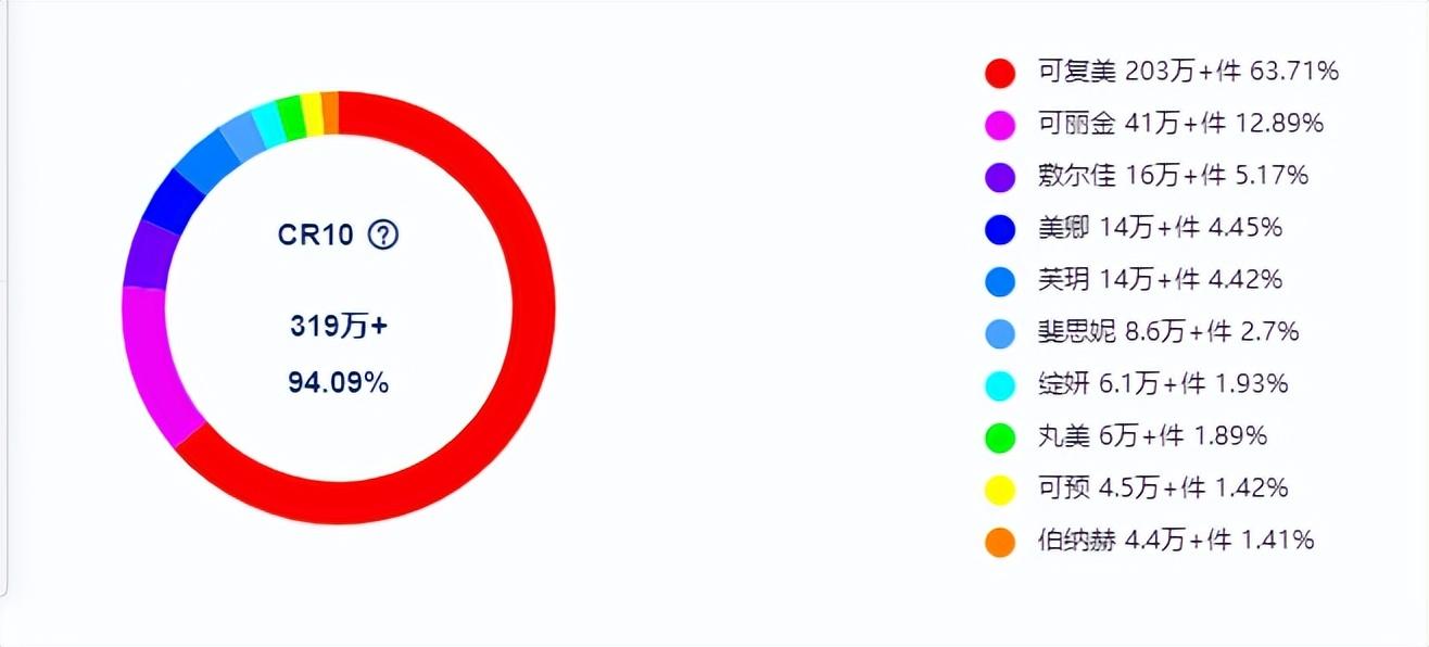 其中,可复美2022年以全销量203.5万件,销售额4.7亿独占鳌头!