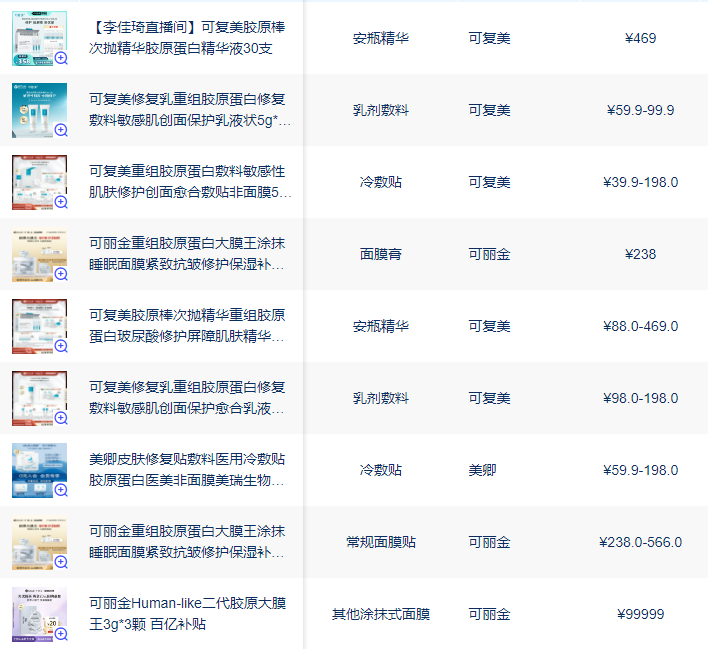 在产品方面,含重组胶原蛋白的化妆品品类中,