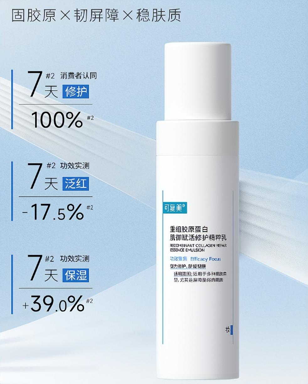 可复美推出「胶原乳」,宣称7天实力修护,固胶原、韧屏障、稳肤质。