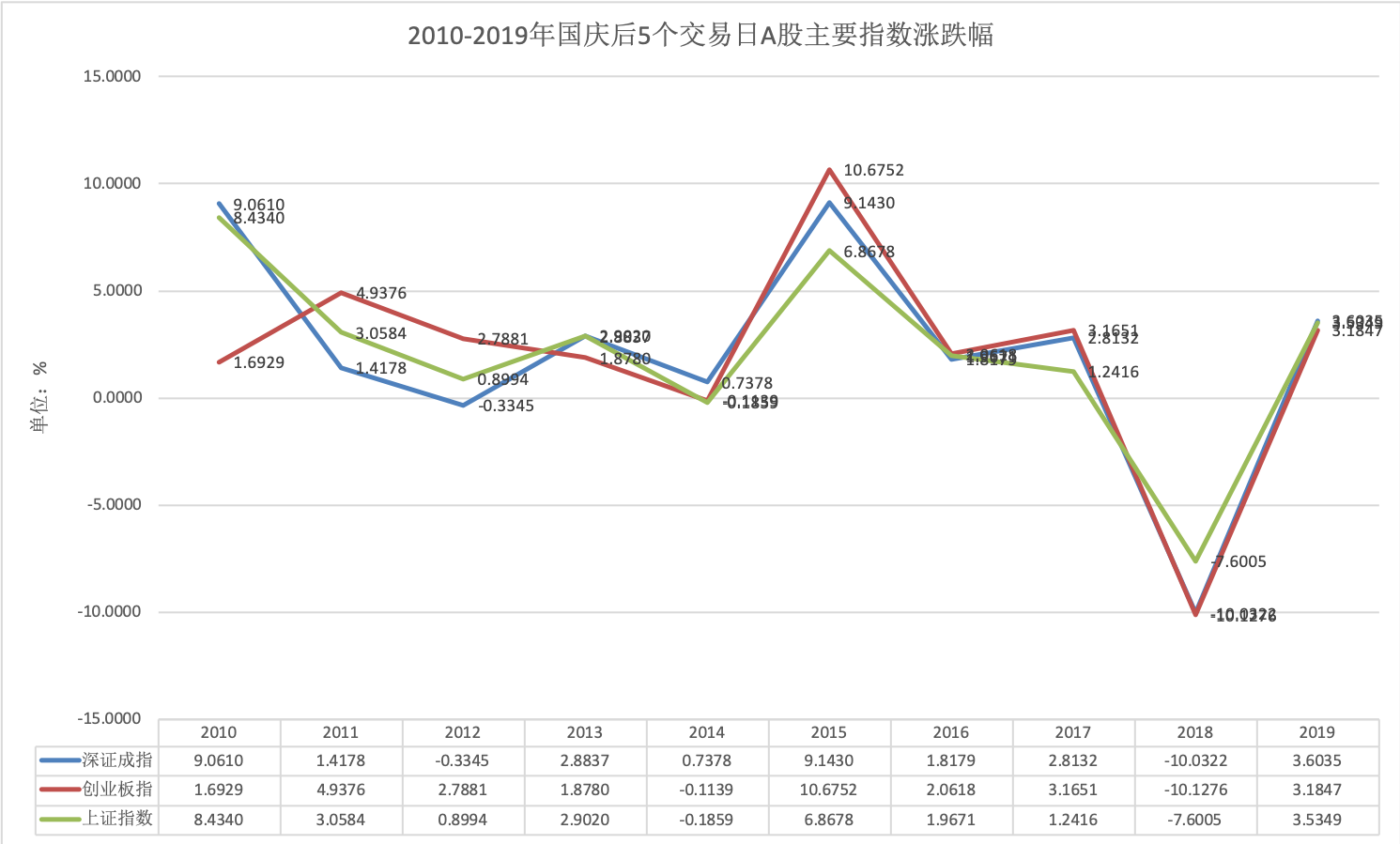 “金九银十”历史数据来看,过去10年间国庆后5个交易日内,上证指数、深证成指、创业板指均出现8次上涨、2次下跌。