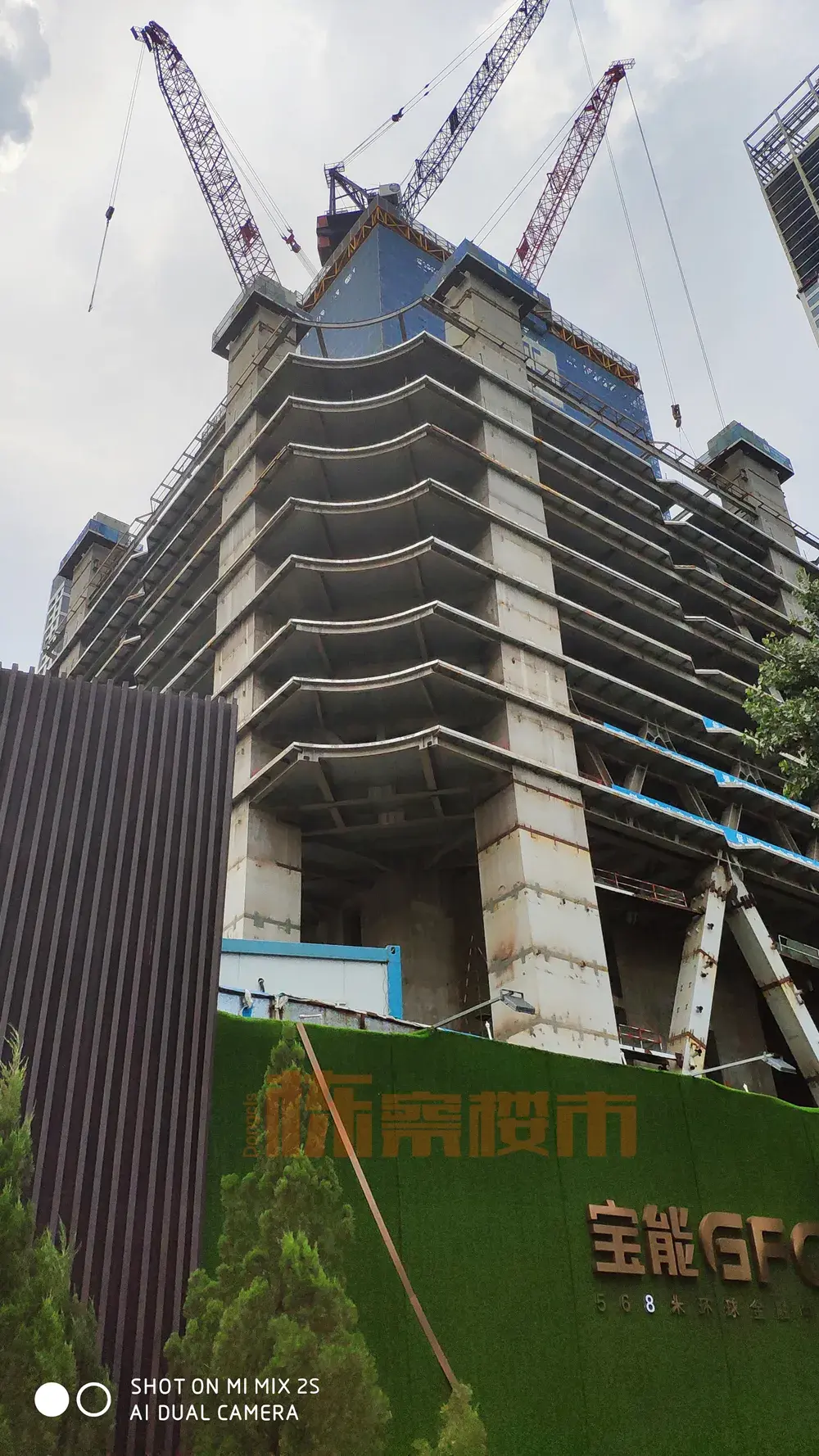 可惜主楼在建出地面一定高度之后,便开始停滞,长时间没有明显进展。而本次考察中,发现主楼依然没有太明显的进展以及建设迹象,不过副楼的幕墙在有条不紊的安装之中,购物中心也有一定变化,期待能够早日开业。