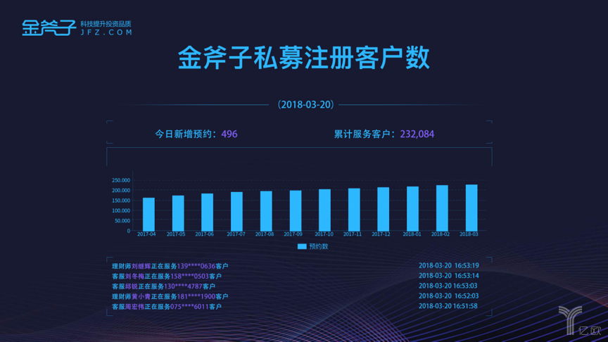 伴随着私募大时代与新经济行情的到来,金斧子透露将在三年之内努力覆盖100万高净值注册用户,建设1000人以上精英理财师团队,实现1000亿以上财富管理资产配置规模,瞄准成为国内最大的私募发行与服务平台目标。