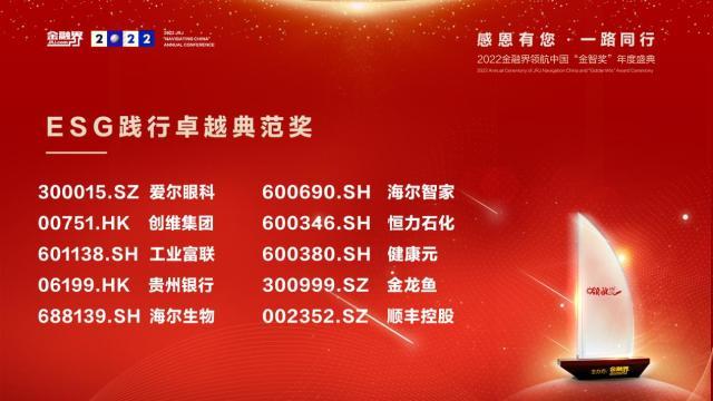 “金智奖”2022金融界上市公司价值评选结果揭晓海尔智家等十家企业荣获中国上市公司ESG践行卓越典范奖-10年上市公司