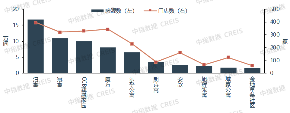根据中指研究院监测数据,截至2022年末,品牌长租公寓在60余个城市运营超2700家门店,开业房源超75万间,其中泊寓、冠寓、CCB建融家园、魔方、乐乎公寓开业门店数与房源数突出。这些经营市场化长租公寓的企业都有望获得更大力度的金融支持。