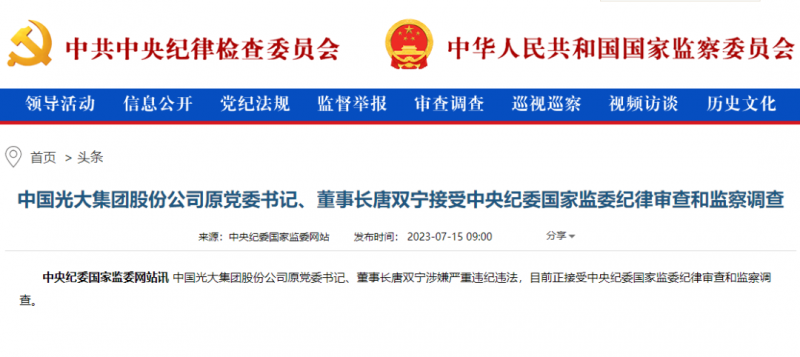 唐双宁此次究竟因何事被查,官方尚未披露详情。不过,他曾掌舵的光大集团近年来确实“风雨满楼”,已有多名干部落马,其中不乏唐双宁的爱将。