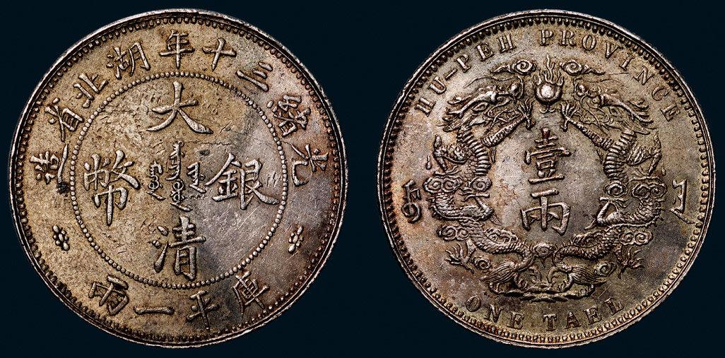 清末很少造“库平一两”面值的银币。因而一两银币都价值连城,这枚在2020年嘉德春拍出了55万元的高价。