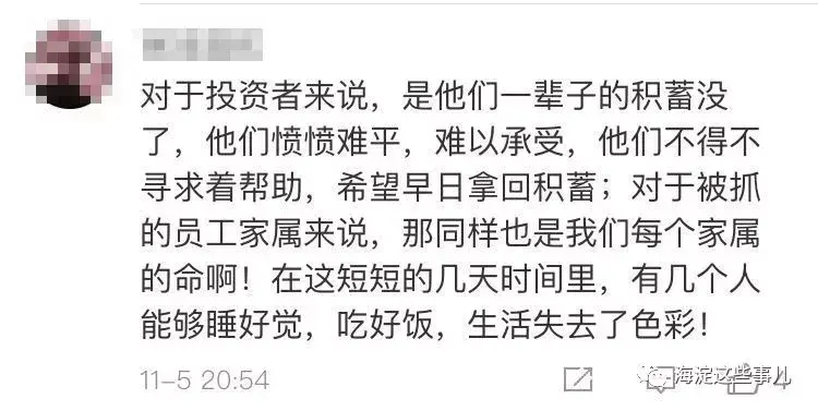在海淀公安分局的通报微博下,也有一些居民表示自己就是受害者,投入了不少积蓄,迫切希望能将钱追回: