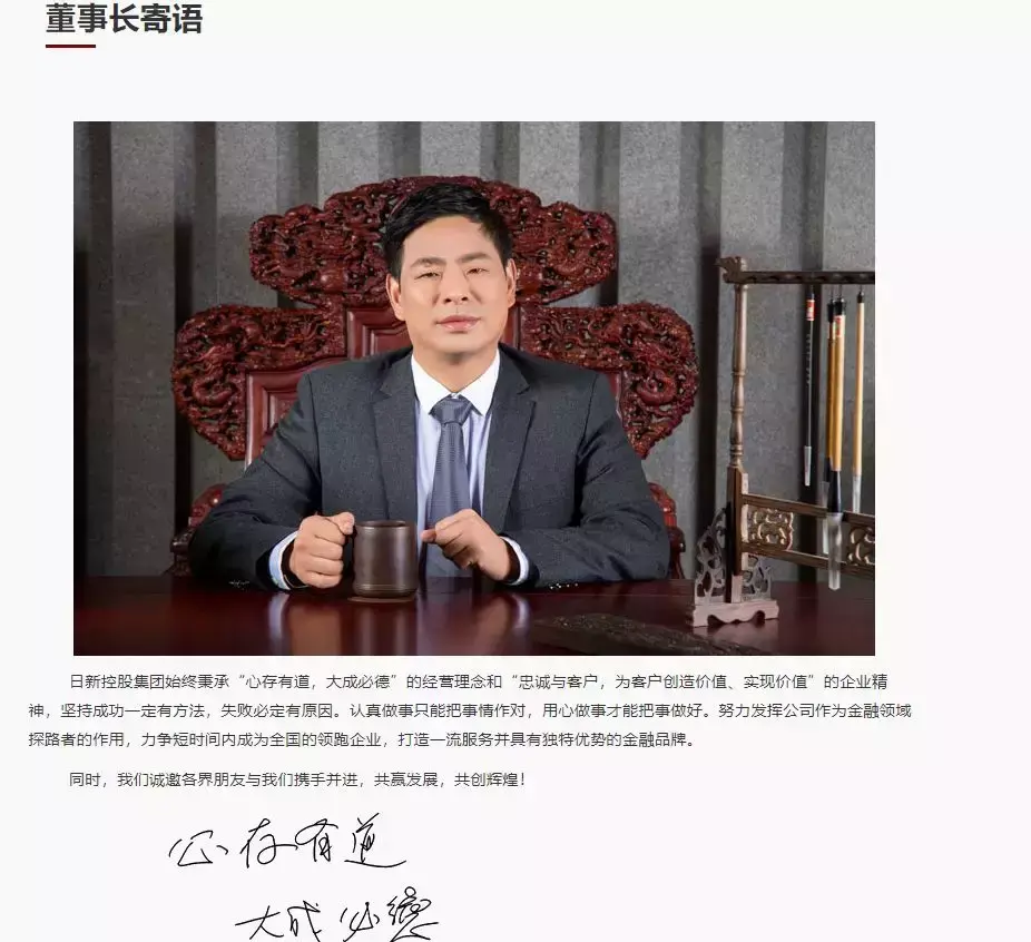 日新控股集团创始于1992年,系一家跨金融、影视、旅游、农业、贸易、地产等多领域的综合性产业集团公司,目前拥有员工2000多人、全国近百家分公司、中国品牌企业500强、总控资产近百亿元的集团公司。旗下钱生钱财富管理顾问有限公司在上海股权托管交易中心挂牌,同时,董事长投资的中企会日新(北京)投资基金管理有限公司也在交易中心挂牌。