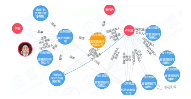 公开资料显示,钱生钱全称钱生钱财富管理顾问有限公司,成立于2014年1月,注册资本10000万人民币,公司法人卢军画,该公司股东信息为日新控股集团有限公司为钱生钱大股东,持股90%,法人卢军画持股10%。据企查查显示,吕俊成疑似钱生钱实际控制人。
