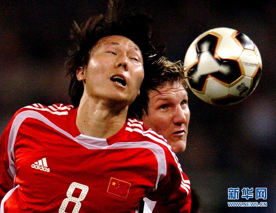 图为2005年10月12日,中国队球员李铁(前)与德国队球员施魏因斯泰格争抢。当日,在德国汉堡举行的中德足球友谊赛中,中国队以0比1负于德国队。 新华社记者吴晓凌摄