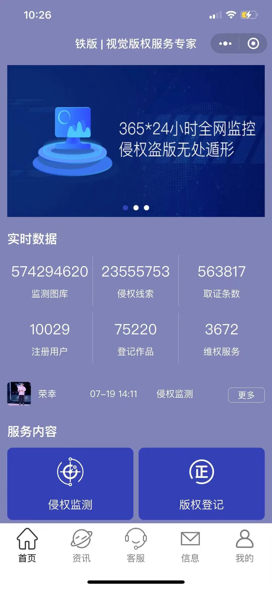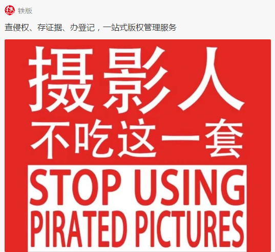 通过“铁版”小程序,摄影师们能够更轻松、便捷、低成本地完成侵权监测、盗版取证、版权登记,以及后续维权与起诉。