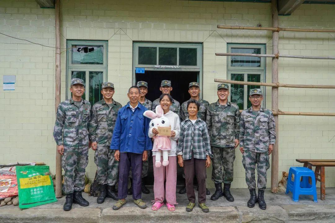 ▲周建斌(后排左一)与战友慰问贫困学生