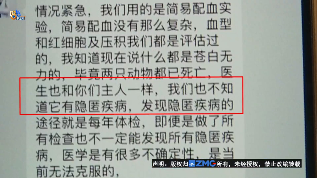 小章还认为,小猫“莎莉”献血前的检查,院方做得过于仓促和简单。医生之前回复:“情况紧急,用的是简易配血实验,医生和主人一样,也不知道它有隐匿疾病。如果没有及时输血死亡了,