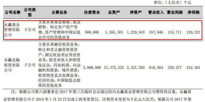 年报也称,成立于2013年11月的永赢基金,在2018年1月再次增资扩股,注册资本增至9亿元。2018截至2018年末,永赢基金非货币公募基金管理规模714.24亿元,货币基金管理规模499.03亿元,公募基金管理规模合计1213.27亿元,在131家公募基金管理人中排名第22名(规模排名不含货基及理财债基)。