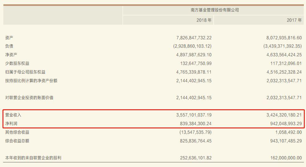 华泰证券年报显示,其持股45%的南方基金2018年实现营业收入35.57亿元,同比增长3.88%;净利润为8.39亿元,同比下降10.9%。截至2018年底,南方基金管理资产规模合计8293.34亿元,其中,公募业务管理基金数量合计178个,管理资产规模合计5633.90亿元。