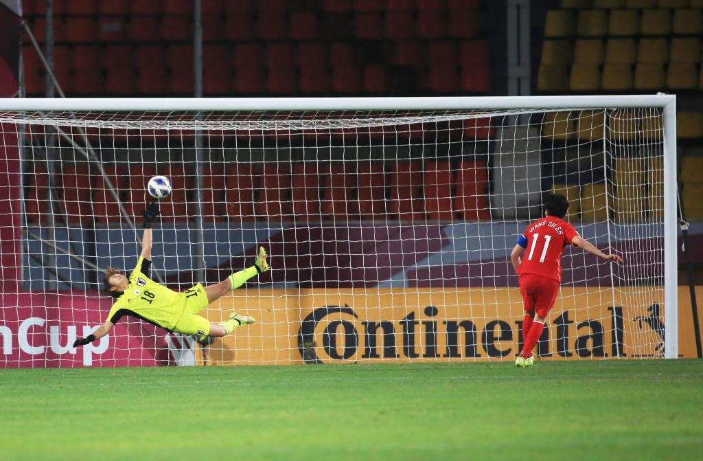 2月3日,中国队球员王珊珊(右)在点球大战中破门。新华社发(贾韦德·达尔摄)