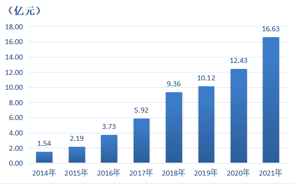 近年来,天力锂能的销售规模保持了持续增长。Wind数据显示,2014年其营收仅1.54亿元,到2021年营收已达16.63亿元,