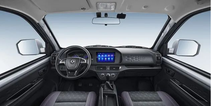 东风小康D71的驾驶室横向内宽度为1590mm,前纵向纵深960mm,前舱安全距离745mm,方向盘至座椅靠背的距离很宽,驾驶室内部的空间更大、整个座舱更加符合人机工程学,给用户带来非常好的驾乘舒适性。