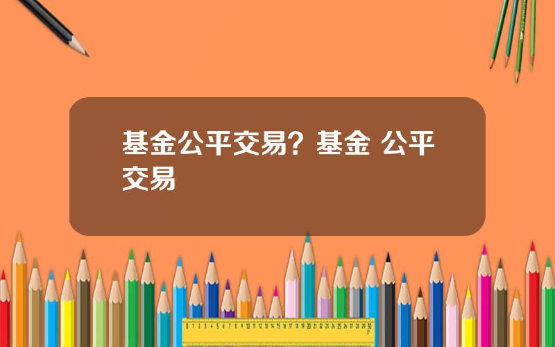 本篇文章给大家谈谈基金公平交易,以及基金 公平交易对应的知识点,文章可能有点长,但是希望大家可以阅读完,增长自己的知识,最重要的是希望对各位有所帮助,可以解决了您的问题,不要忘了收藏本站喔。