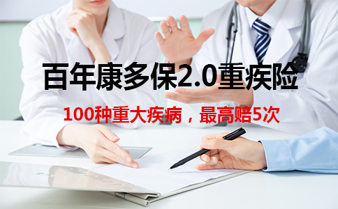 百年康多保2.0重疾险是一款多次赔付型的重疾险产品,100种重大疾病,最高赔5次,可选18种前症责任,赔20%保额。